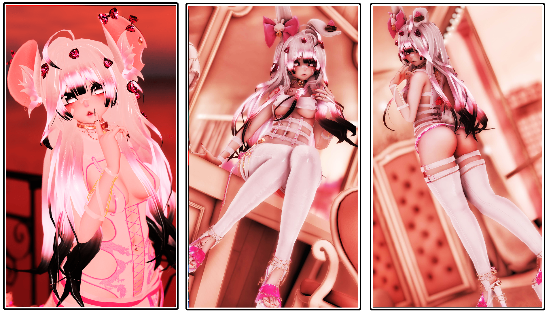 ↳ Clothing Options: Short Top, Short Dress, Pasties, Bodysuit, Collar, Bandages, Waist Harness, Belt, Front Flap, Sleeves set, Japanese outfit without top and Short top without the top, just undies, regular Feet, Boots, Bunny Feet