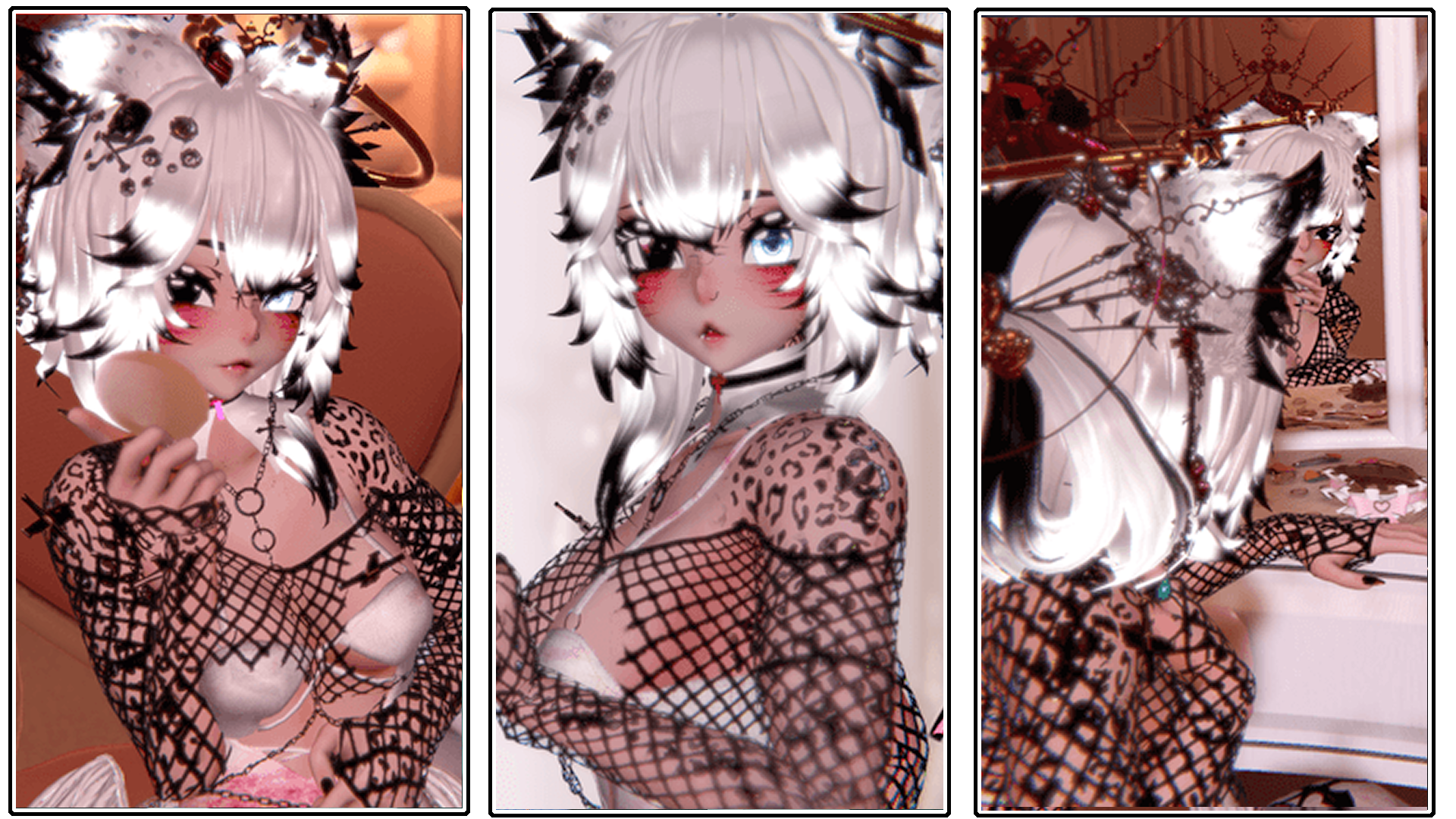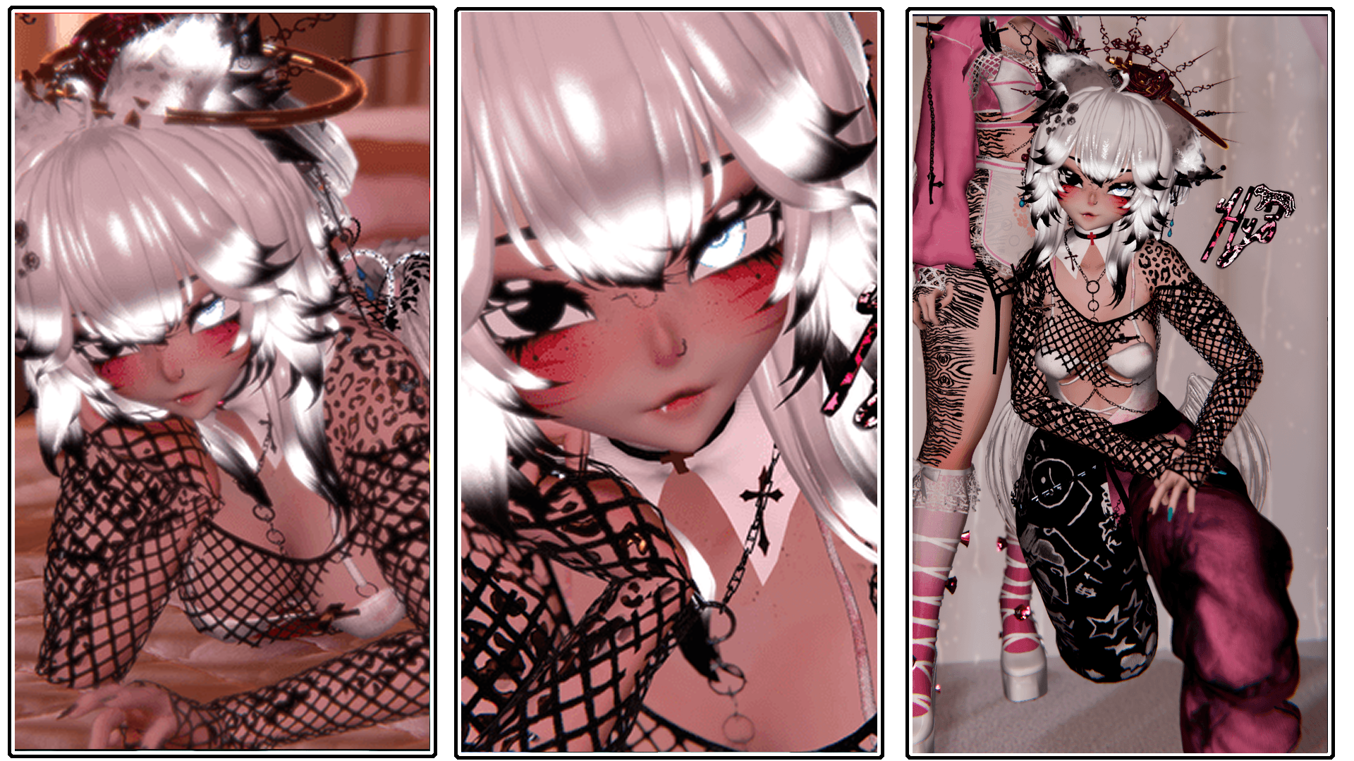↳Clothing Options: Collar, Fishnet Top, Fishnet Skirt, Leggings, Pants, Heels (toes will stay tippy toed), Crown, Wings, Dagger, Chain Top, Waist Chain